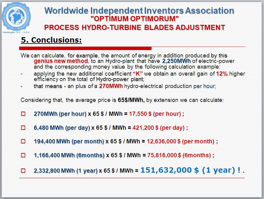 - ✅ The advantage of this method is that it grows the efficiency of the turbine using the same amount of water, there is no need to build another hydropower units much bigger which consume much more water to produce the same electricity, not least with big costs